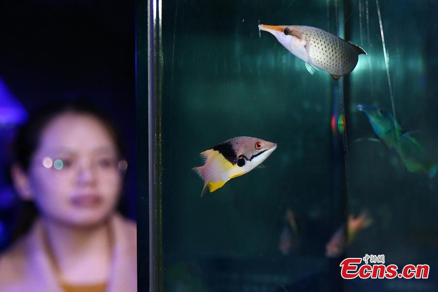 Different species of fish are on display at Nanjing Underwater World aquarium in Nanjing City, East China's Jiangsu Province, Jan. 21, 2019. Small tropical marine fish were housed at the aquarium during an exhibition to welcome the Spring Festival, China's Lunar New Year. (Photo: China News Service/Yang Bo)