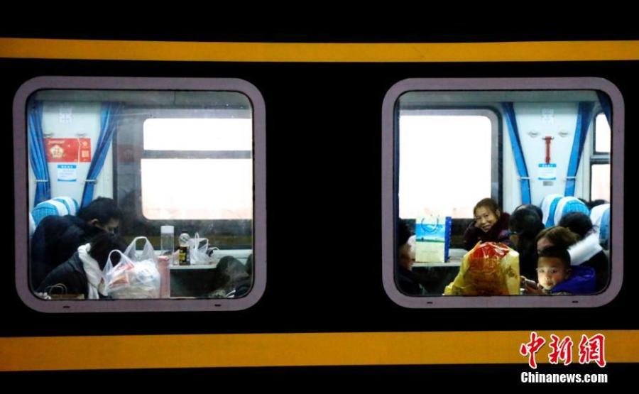 Passengers are seen onboard a train at a railway station in Yichang City, Central China’s Hubei Province, Jan. 21, 2019. The Spring Festival travel rush started Monday, unleashing China's largest seasonal migration as families reunite for the most important traditional holiday. From Jan. 21 to March 1, nearly three billion trips will be made on China's transport system as people set off for family gatherings or tours. (Photo: China News Service/Huang Yuyang)