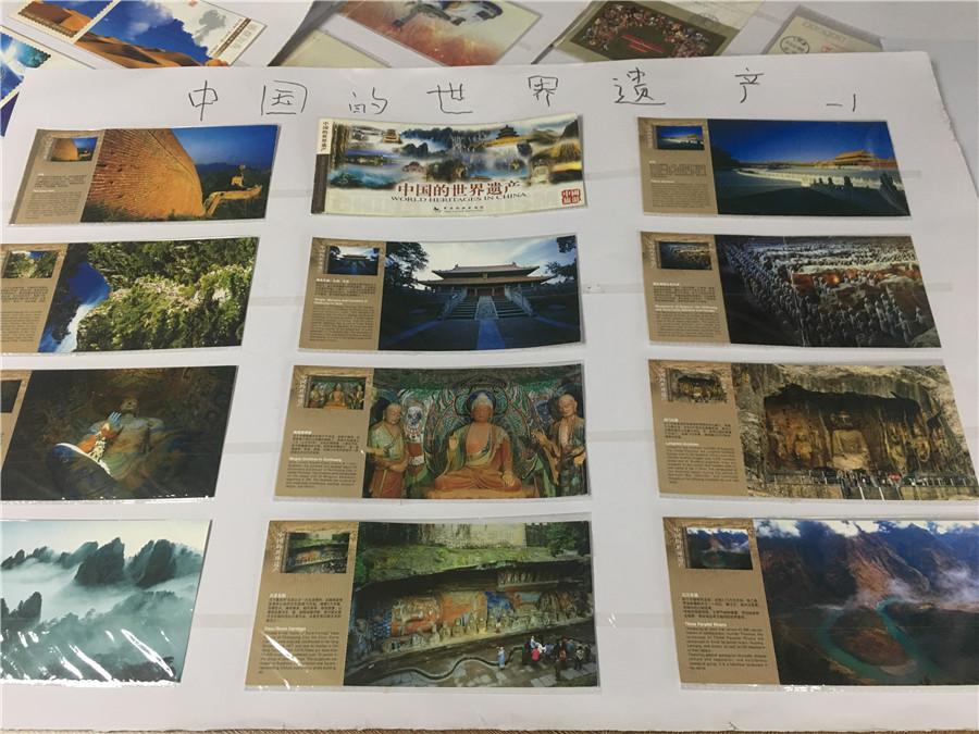 Part of Kong Xiangming's postcard collection, featuring world heritage sites in China. (Photo/chinadaily.com.cn)
