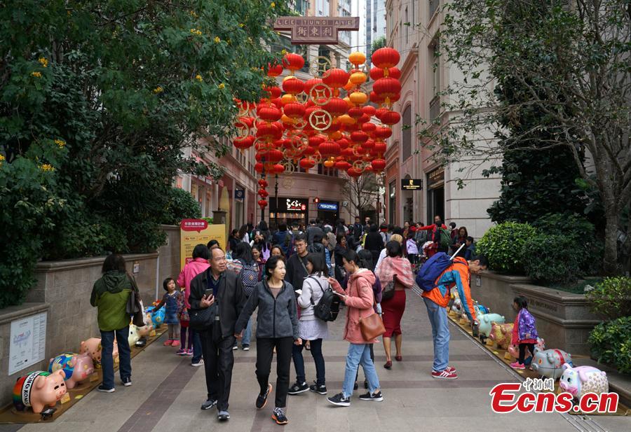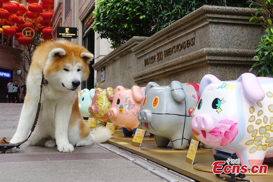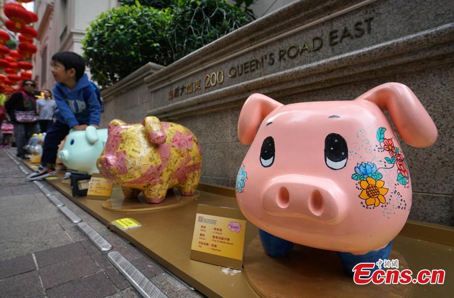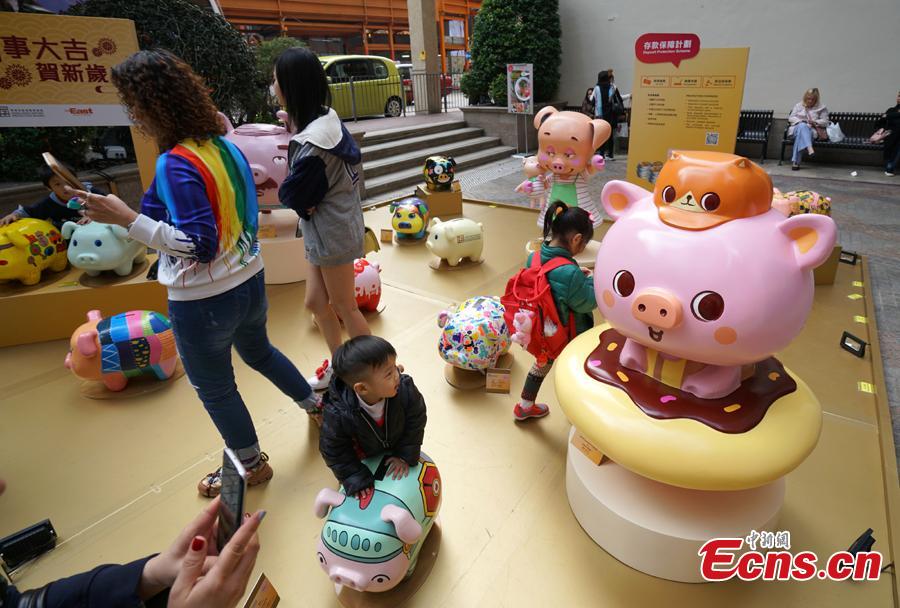 A piglet-themed art installment to promote the importance of saving money has been organized by the Hong Kong Deposit Protection Board and appears in an exhibition on Lee Tung Street in Hong Kong, Jan. 27, 2019. Hong Kong students and local artists designed 66 piglets for the exhibition. 2019 is the Year of the Pig. (Photo: China News Service/Zhang Wei)
