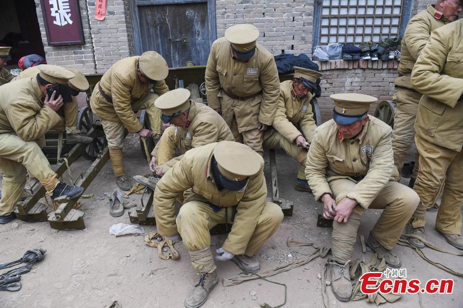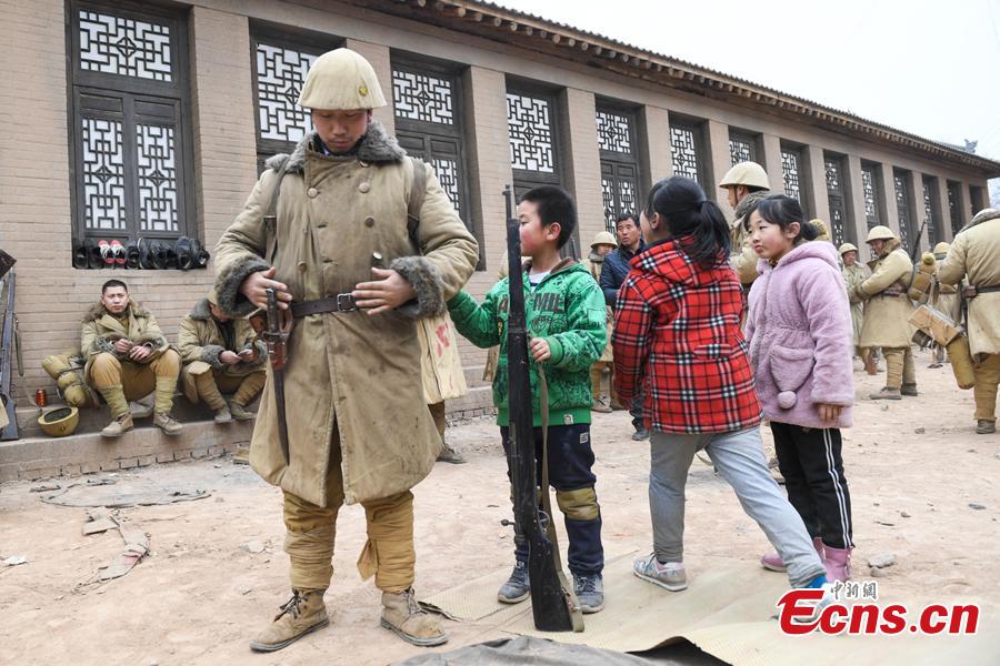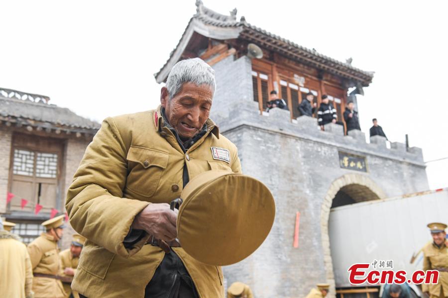 Li Tieliang's son works as extra in a TV drama being shot in Beishanyun Village in Yushe County, North China’s Shanxi Province, Jan. 24, 2019. The village has more than 30 well-preserved buildings from the Ming and Qing dynasties, making it a good location to shoot historical film and TV dramas. In recent years, many locals have migrated to other places, while some remaining farmers have found work as extras. Li and his wife survive by farming, while their children work in other cities. Li now works part-time as an extra and earns about 100 yuan ($14) a day. (Photo: China News Service/Wu Junjie)