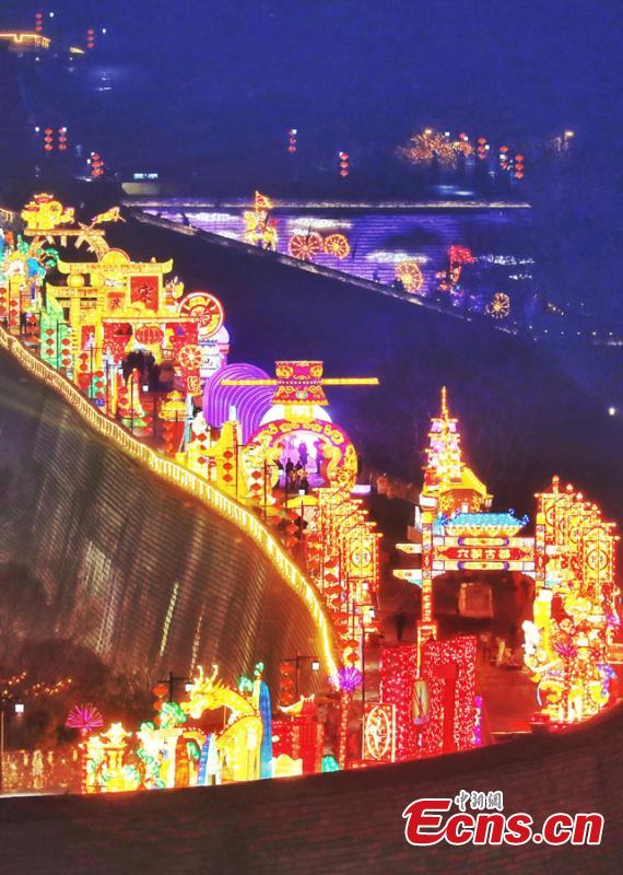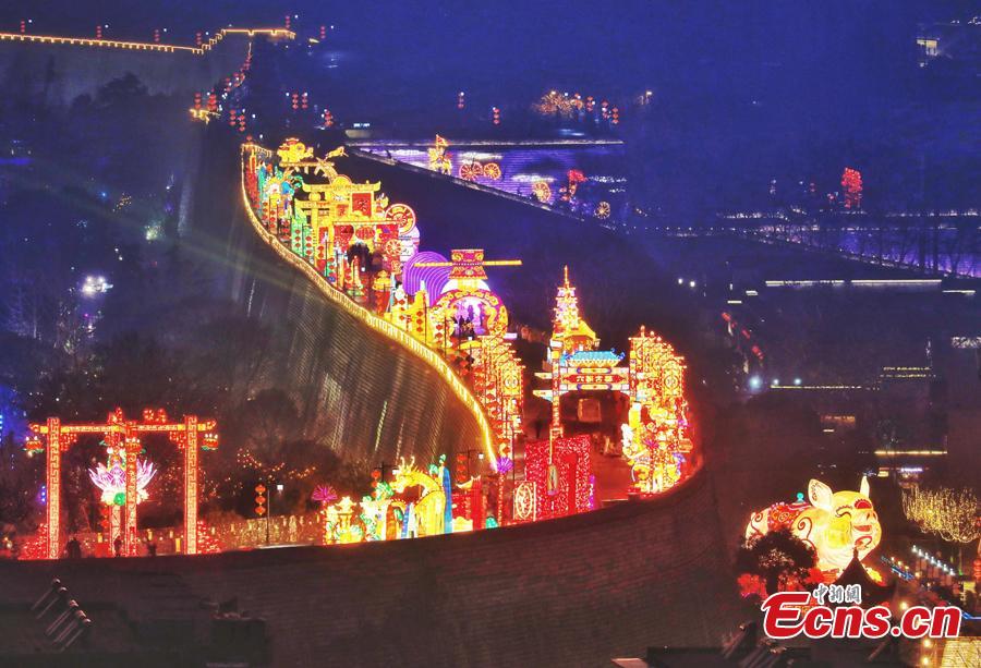 Lanterns ignite the Ming Dynasty (1368-1644) city wall ahead of the Spring Festival, China's Lunar New Year, in Nanjing City, Jiangsu Province, Jan. 28, 2019. (Photo: China News Service/Yang Bo)