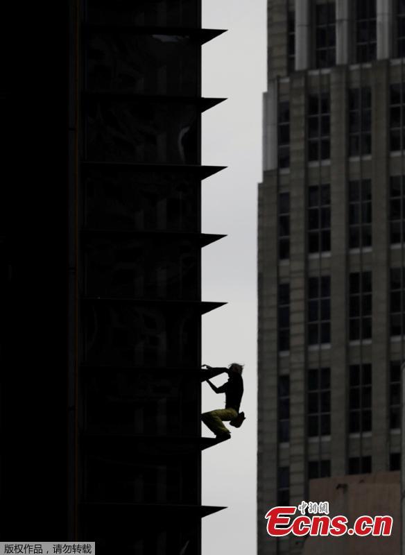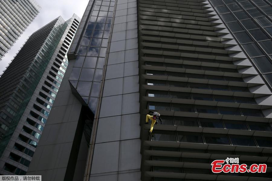 French urban climber Alain Robert stages his first climb in the Philippines as he scales a 43-floor skyscraper in Makati City, Manila, the Philippines, Jan. 29, 2019. (Photo/Agencies)