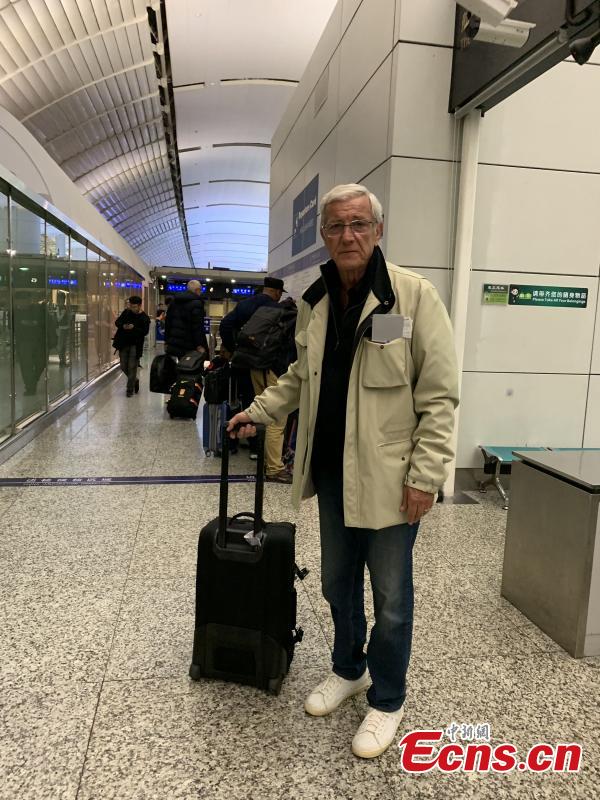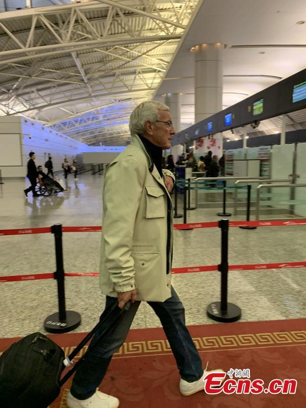 Marcello Lippi, the 70-year-old Italian legendary coach, is seen at Baiyun International Airport in Guangzhou City, Guangdong Province, Jan. 29, 2019. He's leaving the country as his contract as China's head coach ends after the AFC Asian Cup tour. (Photo/China News Service)