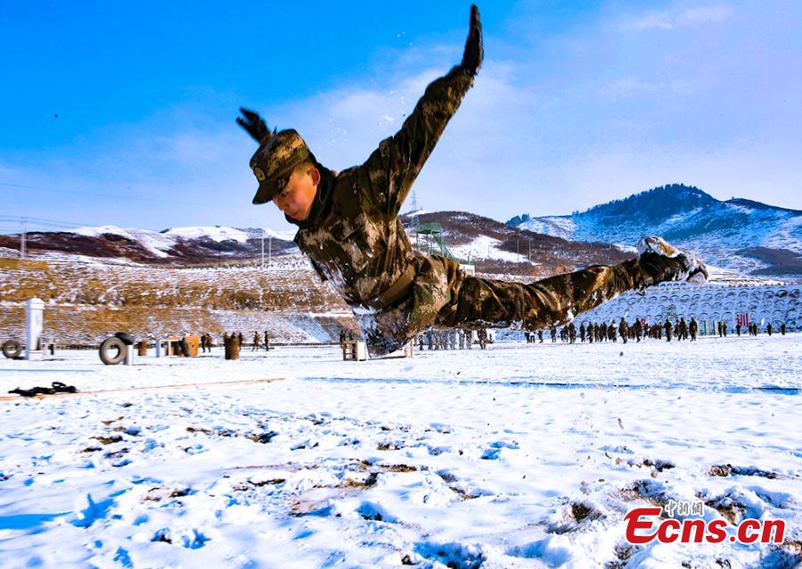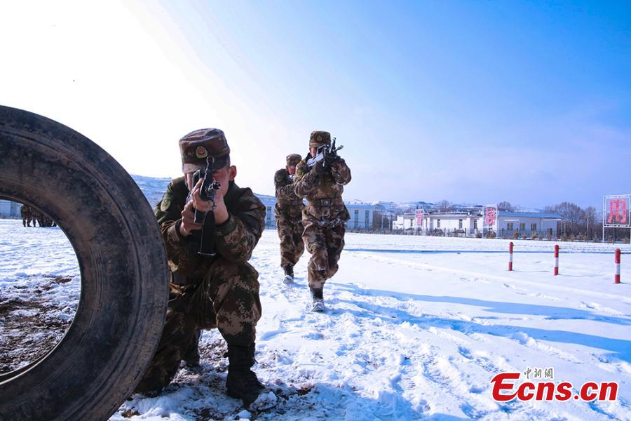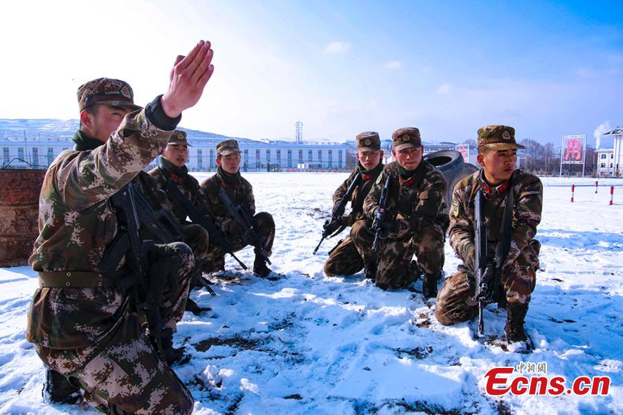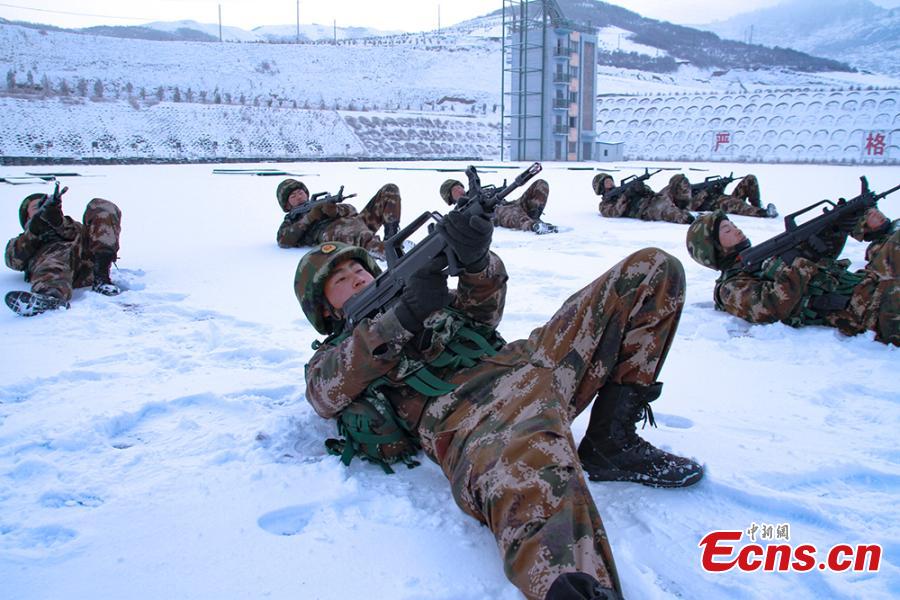 Special police in Gannan Tibetan Autonomous Prefecture, Northwest China’s Gansu Province undergo training despite temperatures that dropped to minus 23 degrees. The 18 training programs include response to a hostage crisis on a high building and rapid maneuvers in mountainous regions. (Photo: China News Service/Zhang Ying)