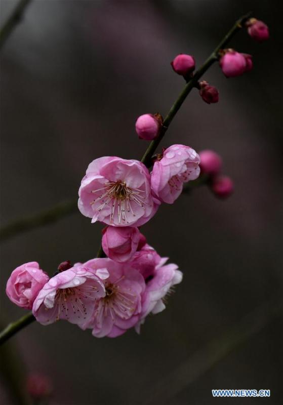 Photo taken on Jan. 31, 2019 shows plum flowers at Aishan Village of Gaoluo Township in Xuanen County of Enshi Tujia and Miao Autonomous Prefecture, central China's Hubei Province. (Xinhua/Song Wen)