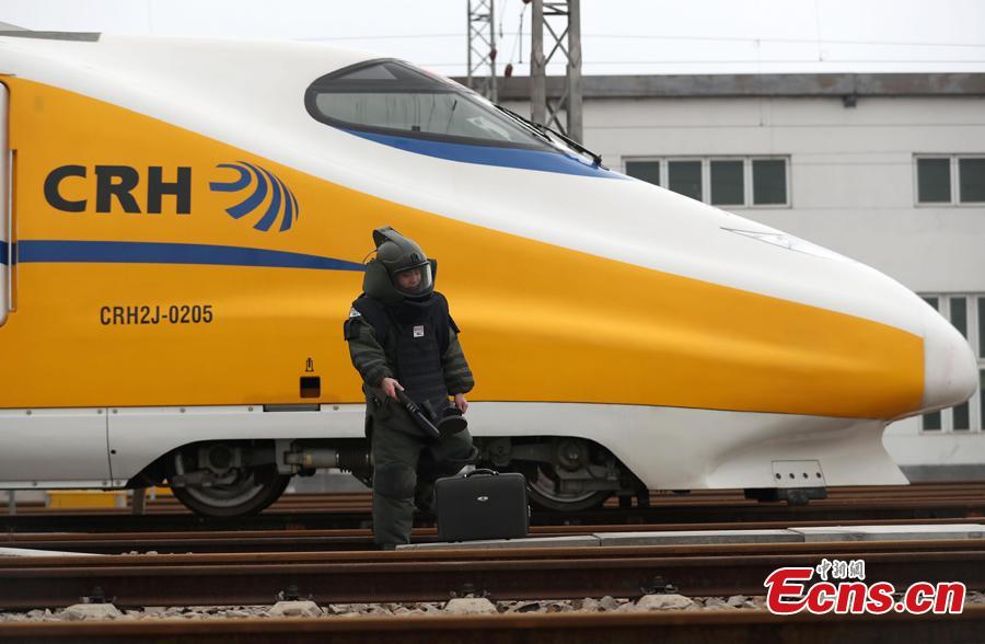 A SWAT team conducts railway protection, sniper tactics and robot-assisted search and explosive clearing drills in Wuhan, Hubei Province, Jan. 31, 2019. As Spring Festival approaches, officers of the Public Security Bureau of Wuhan Railway Administration have enhanced training to deal with emergencies and ensure the safety of passengers. (Photo: China News Service/Zhao Jun)