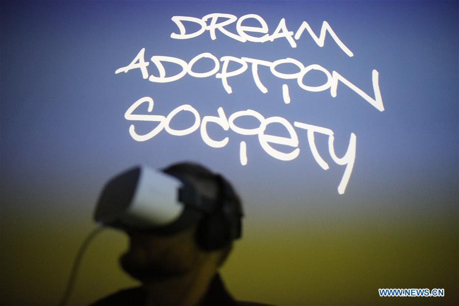 People experience the "Locus Solus" virtual reality exhibit during the third edition of the Night of Ideas in Warsaw, Poland, on Jan. 31, 2019. The Night of Ideas is a yearly art show with debates and workshops held at the Center for Contemporary Art in Ujazdow Castle and organized by the French Institute. (Xinhua/Jaap Arriens)