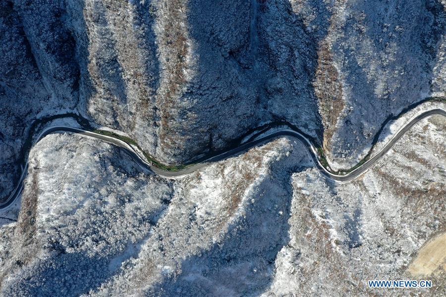 Aerial photo taken on Feb. 1, 2019 shows the snow scenery near Dasanggou Village of Lushi County, central China's Henan Province. (Xinhua/Li Jianan)