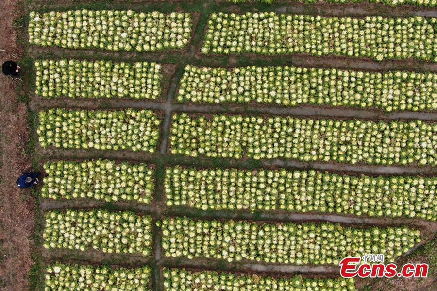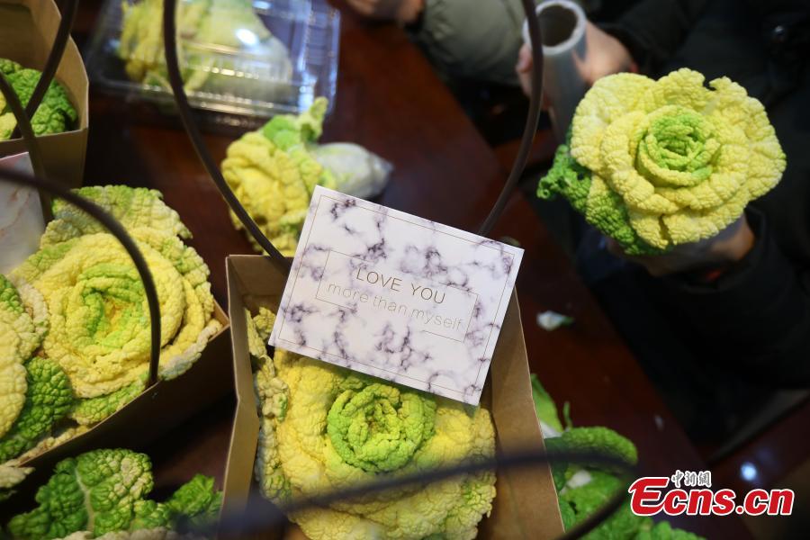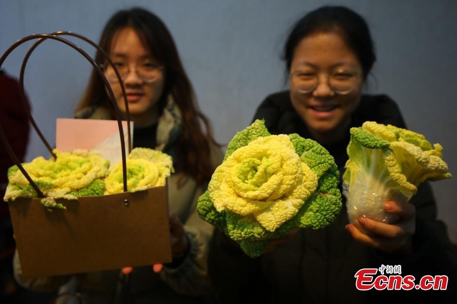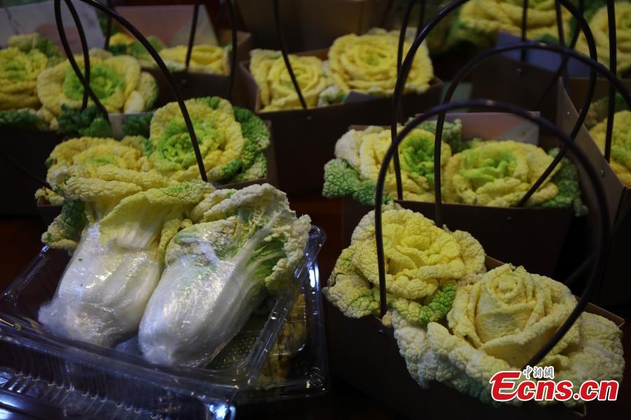Photo shows the rose-like Chinese cabbage, developed by Professor Hou Xilin, at the College of Horticulture, Nanjing Agricultural University, Feb. 13, 2019. Students have launched a start-up to market the Chinese cabbage, which is smaller in size, rose-shaped and better tasting, both online and offline. (Photo: China News Service/Yang Bo)