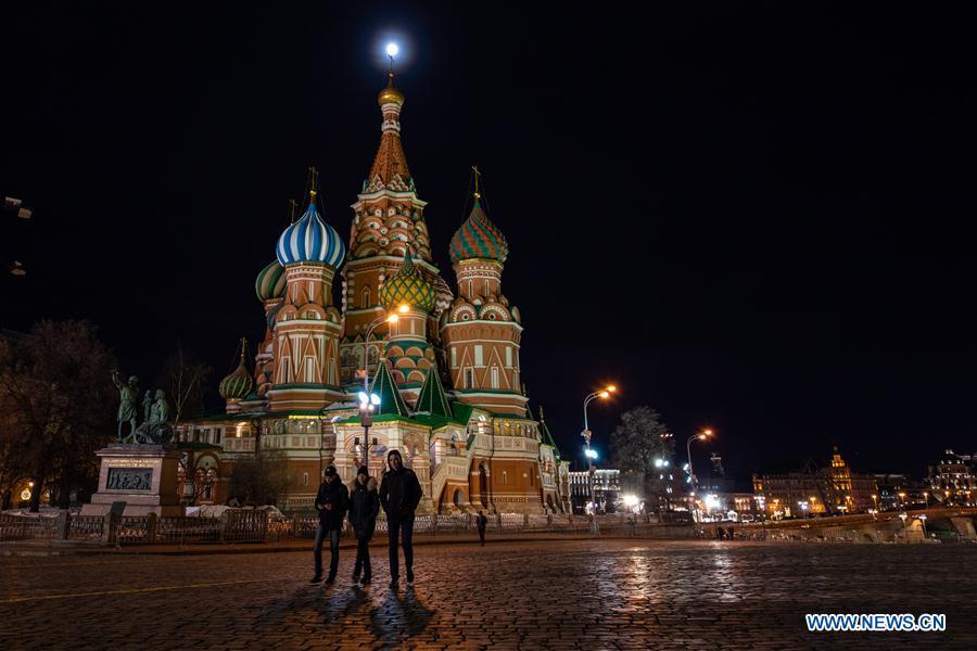 A full moon is seen over St. Basil's Cathedral on Red Square, in Moscow, Russia, Feb. 19, 2019. (Xinhua/Bai Xueqi)