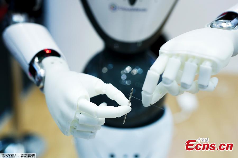 A robot sews at the Mobile World Congress in Barcelona, Spain, Feb. 26, 2019. The annual Mobile World Congress (MWC) runs from 25-28 February in Barcelona, where companies from all over the world gather to share new products. (Photo/Agencies)