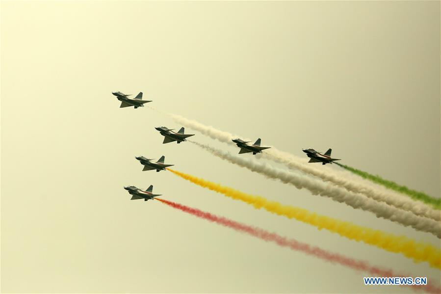 J-10 fighter jets of China's Bayi Aerobatic Team perform during the rehearsal of the Pakistan National Day army parade in Islamabad, capital of Pakistan, March 18, 2019. Pakistan National Day, also known as Pakistan Resolution Day or Republic Day, is celebrated annually on March 23. (Xinhua/Ahmad Kamal)