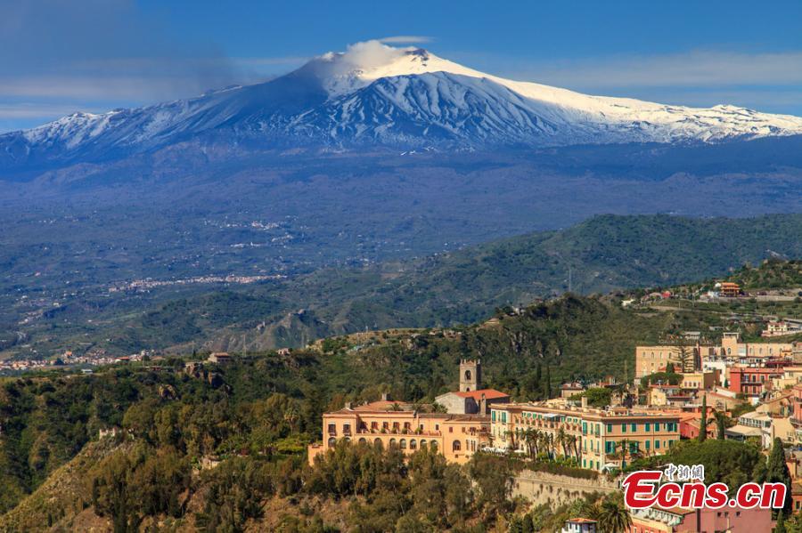 A file photo shows a beautiful scene on the island of Sicily in southern Italy. The island is the largest and one of the most densely populated islands in the Mediterranean Sea. Sicily's sunny, dry climate, scenery, cuisine, history and architecture attract many tourists from around the world. Its main agricultural products include oranges, lemons and olive oil. (Photo/IC)