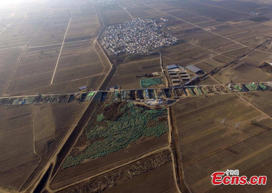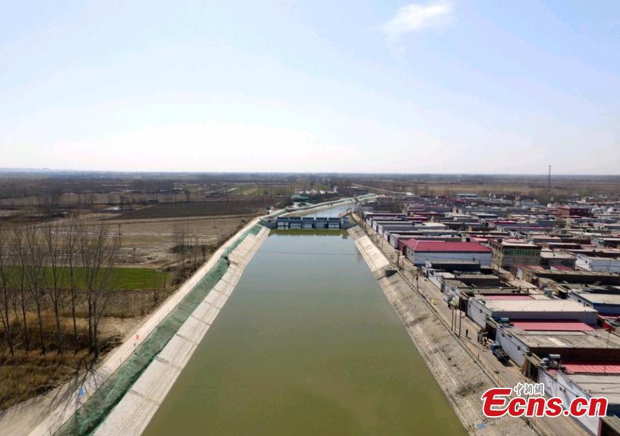 A water conservancy project to divert water from the Yellow River to Baiyangdian Lake in Xiongan New Area, Hebei Province, March 27, 2019. In April 2017, China announced the establishment of the Xiongan New Area, spanning three counties in Hebei Province about 100 km southwest of Beijing. Many of Beijing's non-capital functions, as well as some of its population, will be relocated to Xiongan. (Photo: China News Service/Han Bing)