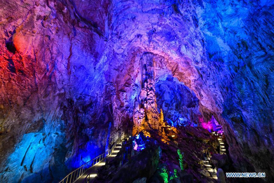 Tourists visit the Furong Cave in Wulong District of Chongqing, southwest China, March 26, 2019. The Wulong Furong Cave was listed as a UNESCO world natural heritage site in 2007. (Xinhua/Liu Chan)