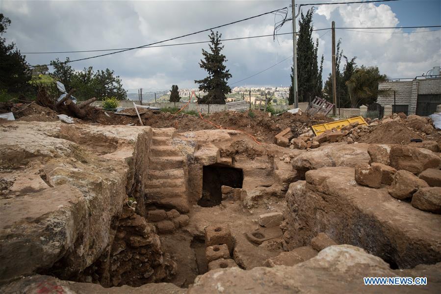 Photo taken on March 27, 2019 shows the view of the remains of a rural Jewish settlement at the Sharafat neighborhood of Jerusalem. Remains of a rural Jewish settlement from 2,000 years ago with luxurious burial ground were discovered in excavations in southern Jerusalem, the Israel Antiquities Authority (IAA) reported on Wednesday. (Xinhua/JINI)