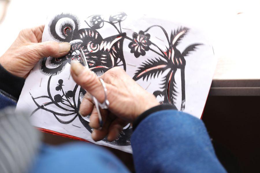 A woman makes a paper-cutting on March 28, 2019, in Fengning Manchu autonomous county, Hebei province.(Photo by Fu Rui/chinadaily.com.cn)