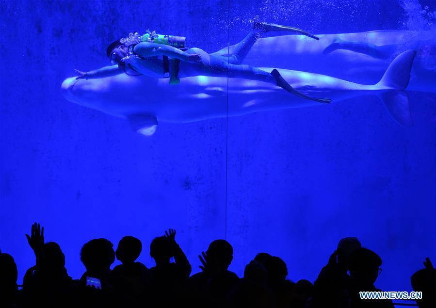Children with Autism Spectrum Disorder (ASD) watch a white whale performance with their parents at the Polarland in Harbin, capital of northeast China's Heilongjiang Province, April 2, 2019, the World Autism Awareness Day. World Autism Awareness Day on April 2 every year is designated to encourage member states of the United Nations to take measures to raise awareness about people with ASD throughout the world. (Xinhua/Wang Jianwei)