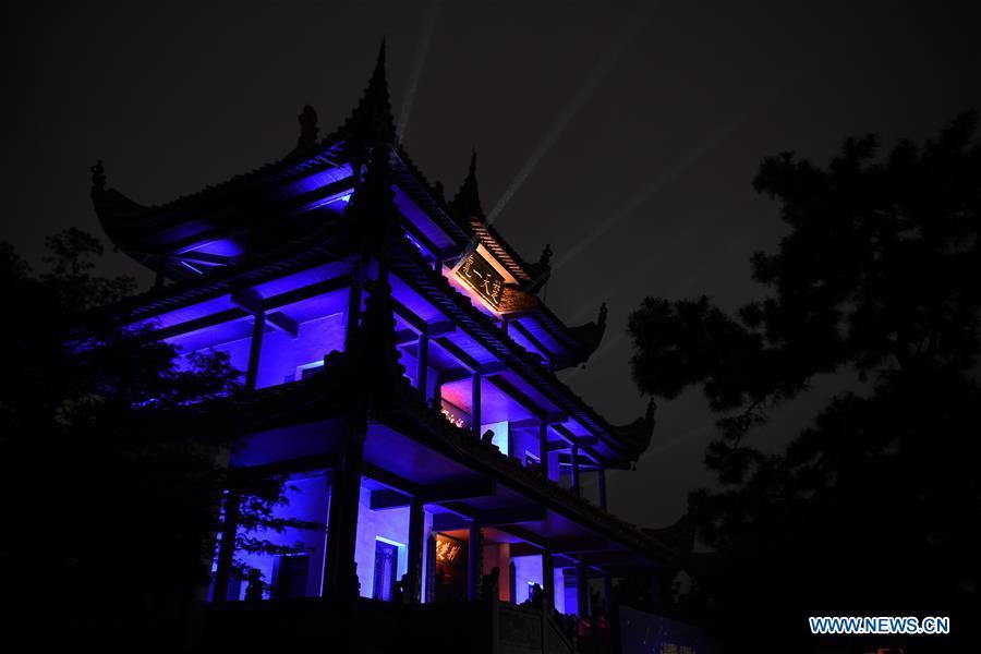 The Tianxin Pavilion is illuminated with blue colored lights to raise awareness about Autism Spectrum Disorder (ASD) in Changsha, capital of central China's Hunan Province, April 2, 2019, the World Autism Awareness Day. World Autism Awareness Day on April 2 every year is designated to encourage member states of the United Nations to take measures to raise awareness about people with ASD throughout the world. (Xinhua/Xue Yuge)