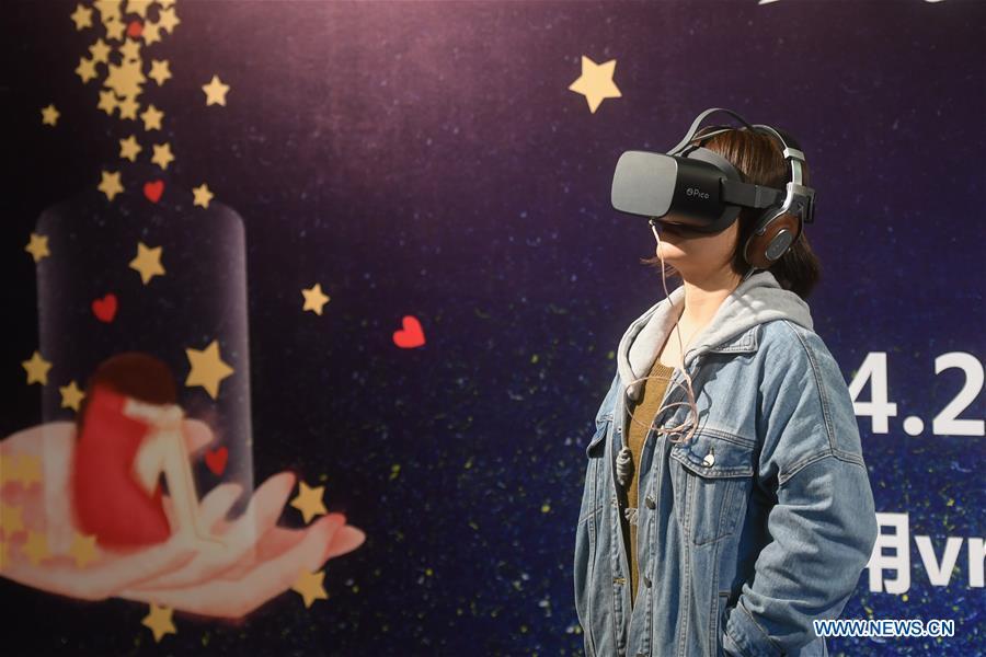 A woman tries on a VR headset that simulates the life of people with Autism Spectrum Disorder (ASD) in Hangzhou, east China's Zhejiang Province, April 2, 2019, the World Autism Awareness Day. World Autism Awareness Day on April 2 every year is designated to encourage member states of the United Nations to take measures to raise awareness about people with ASD throughout the world. (Xinhua/Huang Zongzhi)