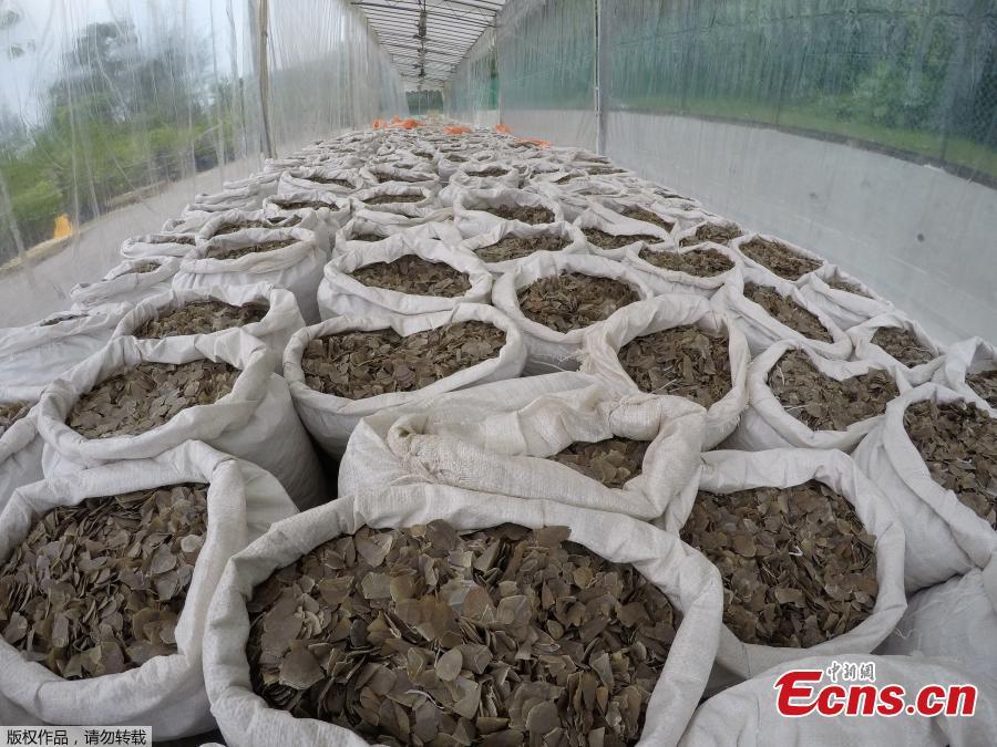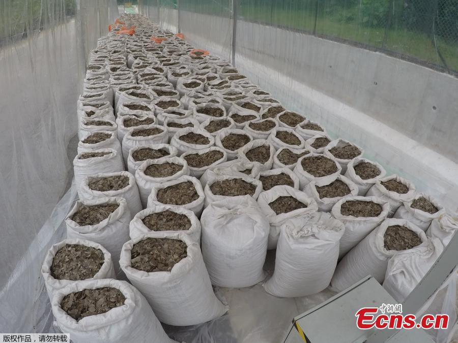 Pangolin scales that were seized by Singapore Customs and National Parks Board on April 8, 2019 are pictured in Singapore. The seizure of 12.7 tonnes of scales, worth an estimated $38 million, follows last week's haul of 12.9 tonnes. The scales in that seizure, the biggest of its kind worldwide in five years, were said to have come from about 17,000 pangolins.(Photo/Agencies)