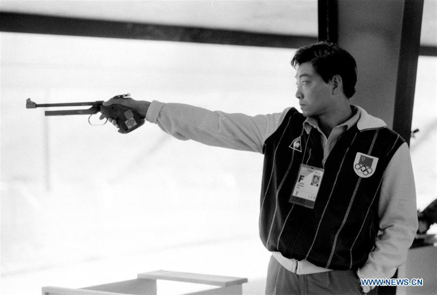 File photo taken on July 29, 1984 shows that China's Xu Haifeng compete in the men's pistol event at the 23rd Olympic Games in Los Angeles, the United States. Xu Haifeng won the gold medal of the event which was China's first Olympic gold medal. From sending athletes to Helsinki Summer Olympic Games for the very first time in 1952 to winning the bid to host 2022 Winter Olympic Games in 2015, the People's Republic of China went through a remarkable history of sports, including successfully hosting the 2008 Summer Olympic Games and preparing for the upcoming 2022 Winter Olympic Games. (Xinhua/Guan Tianyi)