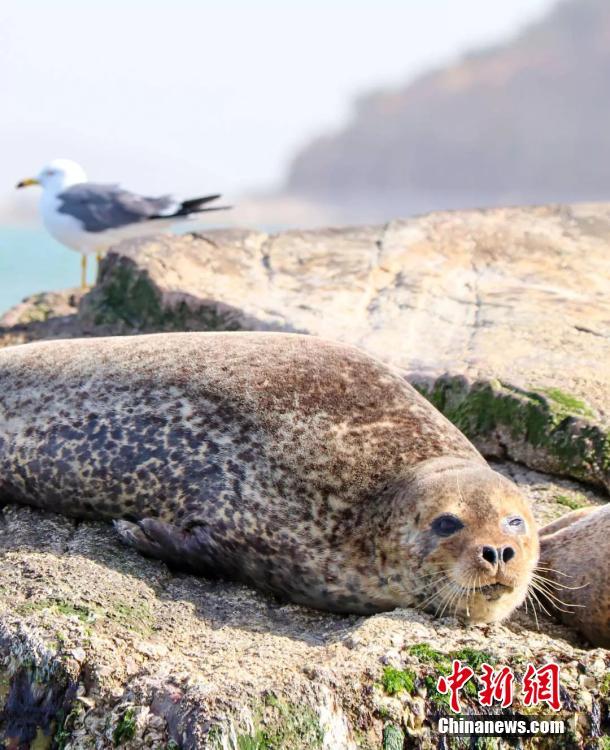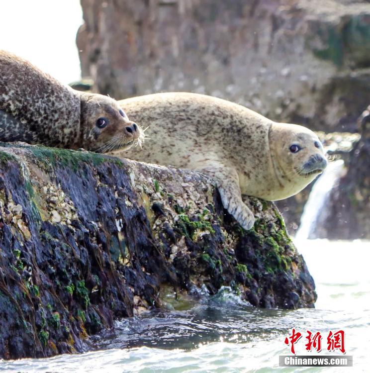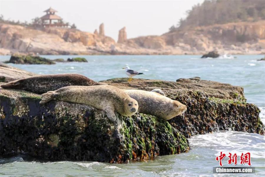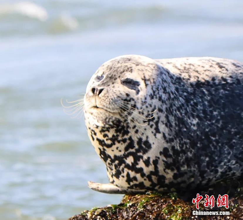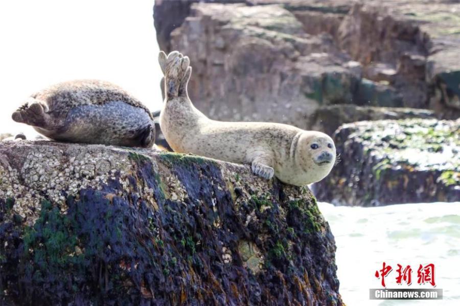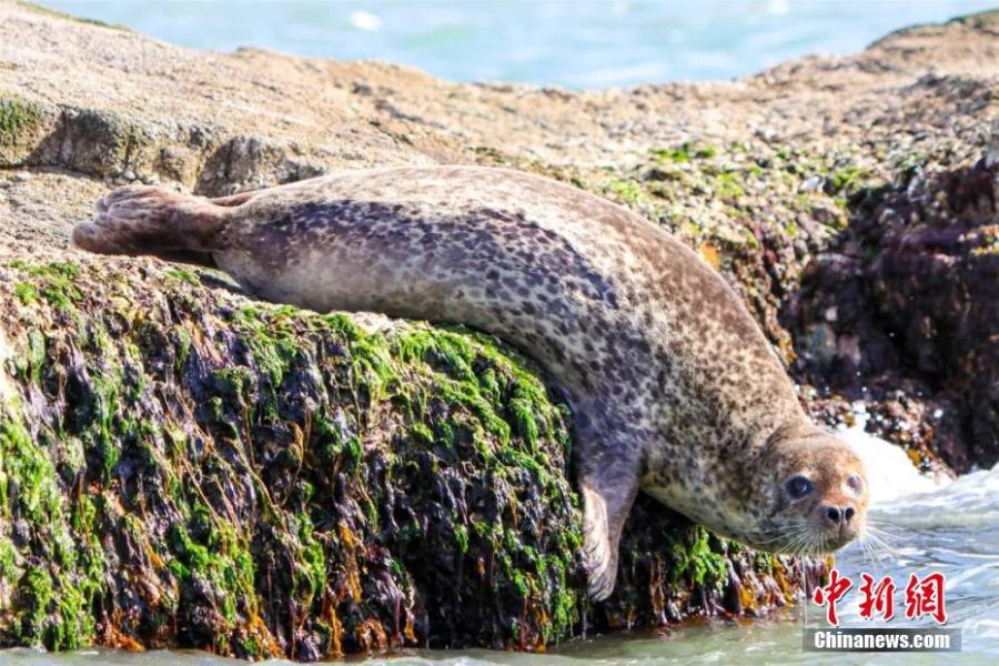 Wild spotted seals are seen in the sea near Changshan Island in Changdao County, Shandong Province. The spotted seals have recently migrated from Liaodong Bay to the area, which is rich with fish, shrimp and algae, to forage and stay for approximately two months. (Photo: China News Service/Wu Kun)