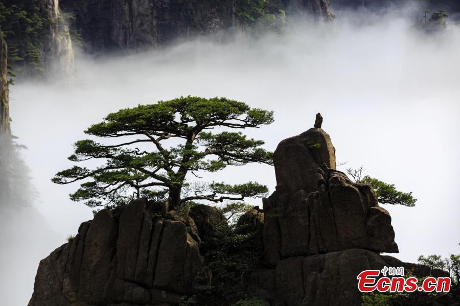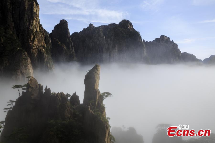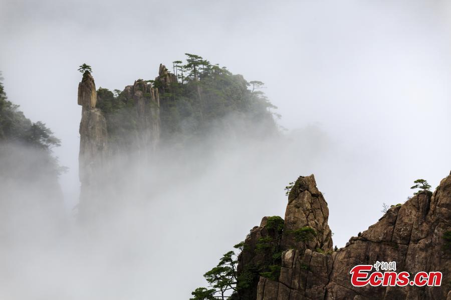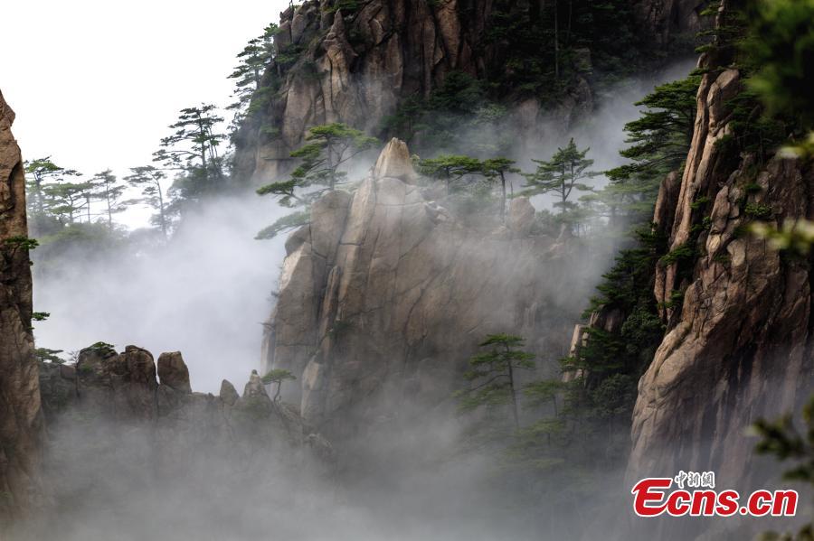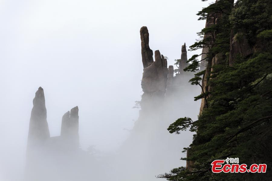 After rain, clouds surround the Xihai Grand Canyon, a sight-seeing spot on Mount Huang in Anhui Province, April 11, 2019. The mountain is a UNESCO World Heritage site, and one of China's major tourist destinations. (Photo: China News Service/Ye Yongqing)
