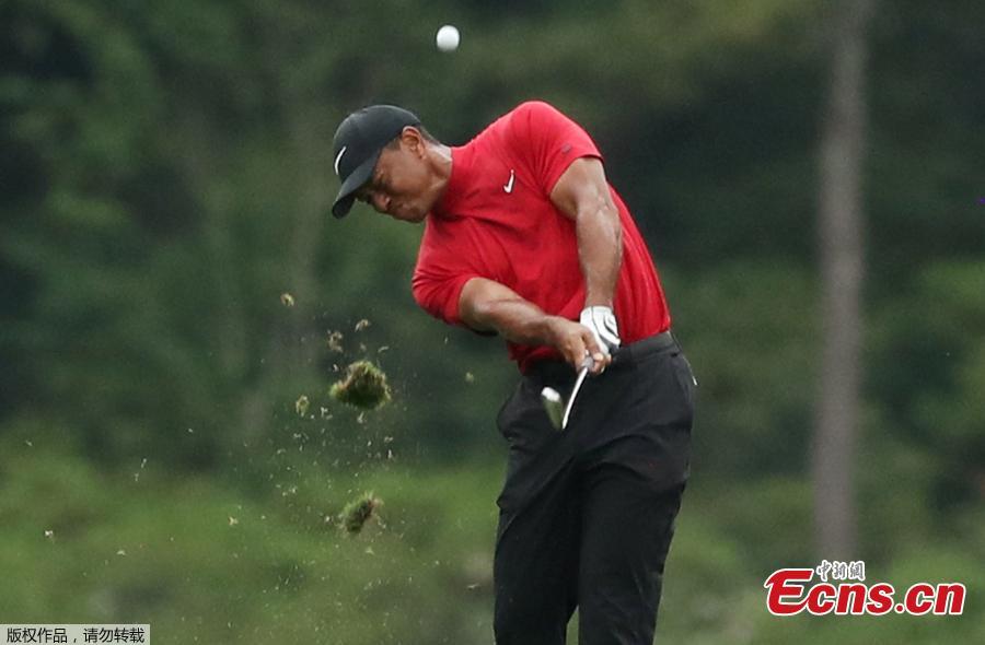 Tiger Woods hits a shot during the final round of the Masters in Augusta, Georgia, on April 14, 2019. (Photo/Agencies)