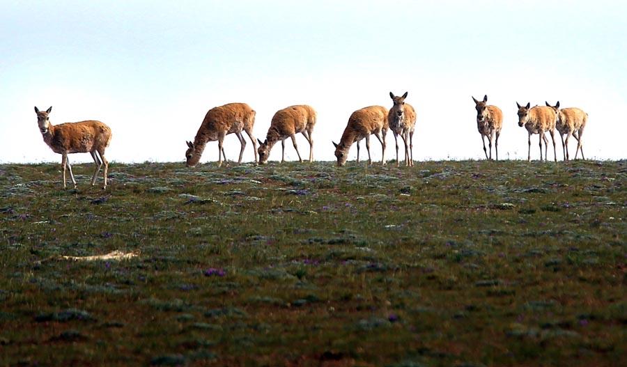 Tibetan antelopes roam in Hoh Xil, Qinghai Province.(PHOTO/CHINA DAILY)