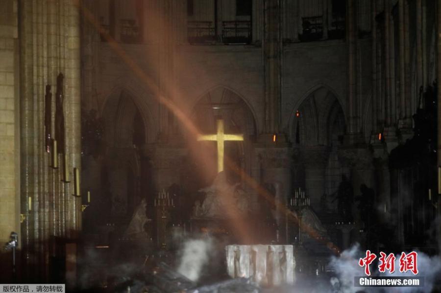 Photo shows the altar of Notre-Dame following the fire, April. 15, 2019. A catastrophic fire engulfed the upper reaches of Paris' (Photo/Agencies)