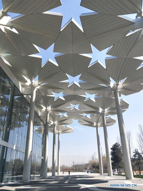 Photo taken with a mobile phone shows a scene on the site for the upcoming 2019 Beijing International Horticultural Exhibition in Yanqing District of Beijing, capital of China, April 15, 2019. (Xinhua/Wei Mengjia)