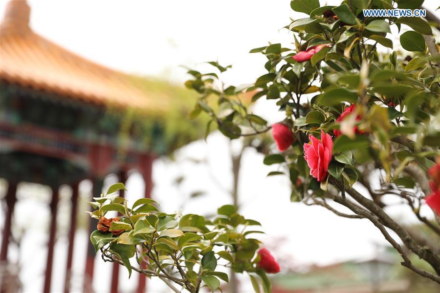 Tourists visit the Encho-en garden in Tottori, Japan, April 18, 2019. Covering an area of about 10,000 square meters, Encho-en is one of the biggest full-scaled Chinese-style garden in Japan. It was built in 1995 to show the friendship between Tottori and north China's Hebei Province. The designing and materials procurement and processing took place in China. The main building was shop-assembled in China before the final assembly in Japan. All these steps were supervised by Chinese engineers. (Xinhua/Du Xiaoyi)