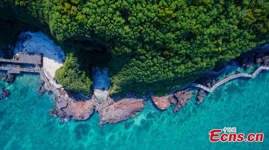 Photo taken on April 24, 2019 shows the amazing natural landscape of Weizhou Island in the Beibu Gulf, Southwest China's Guangxi Zhuang Autonomous Region, the youngest volcanic island in China. A national geological park was established on the island in 2004. (Photo: China News Service/Zhai Liqiang)