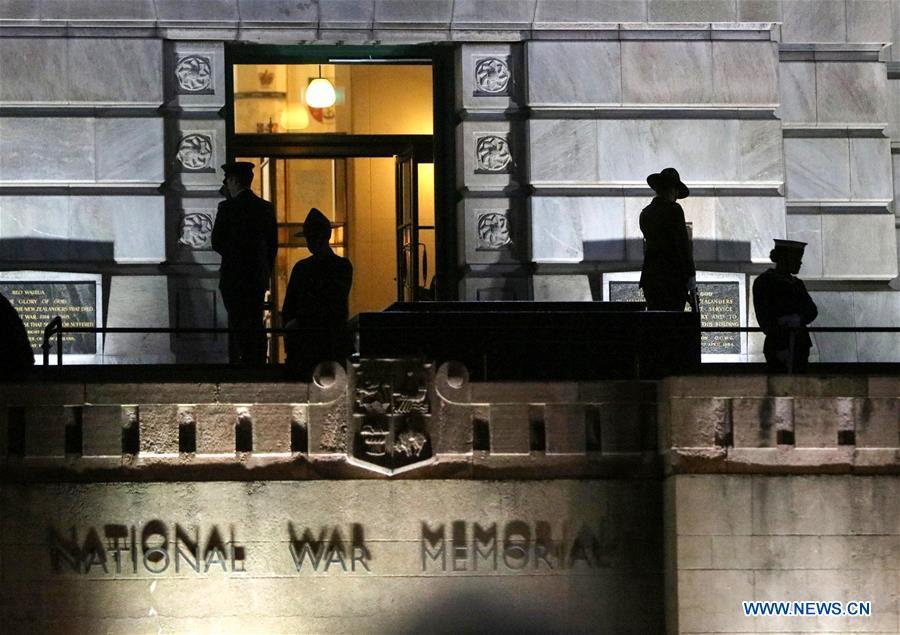 People attend ANZAC Day ceremony in Wellington, New Zealand, April 25, 2019. Anzac Day marks the April 25, 1915 landing of Australian and New Zealand troops at Gallipoli on the Turkish peninsula in an ill-fated WWI campaign against the German-backed Ottoman forces. More than 10,000 Australian and New Zealand servicemen died in the campaign, and while it failed in its military objectives, it gave rise to commemorations of the courage and close friendship that bind the two countries. (Xinhua/Meng Tao)