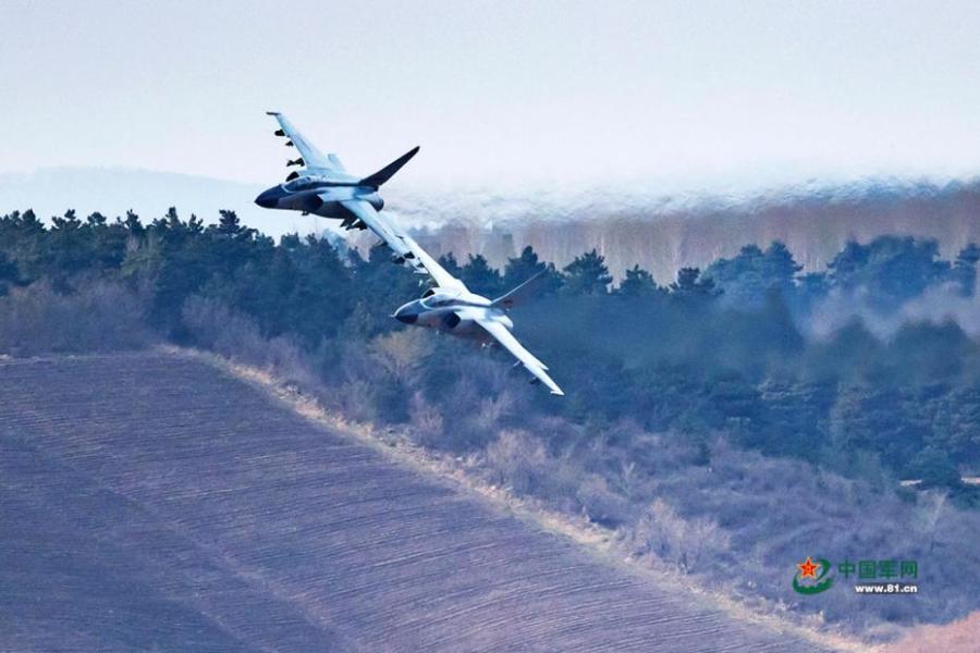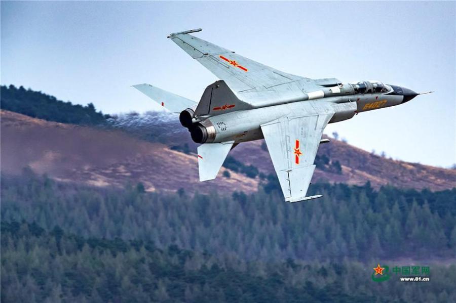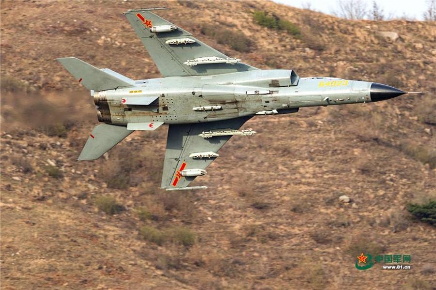 A PLA Air Force warplane in an ultra-low altitude flight training in a valley, April 25, 2019. (Photo/81.cn)