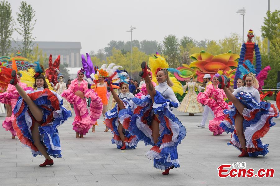 A float parade is held as the 2019 Beijing International Horticultural Exhibition opens on April 29, 2019. The expo, to be held from April 29 to Oct. 7, will exhibit flower, fruit and vegetable farming at the foot of the Great Wall in Beijing.(Photo: China News Service/Cui Nan)