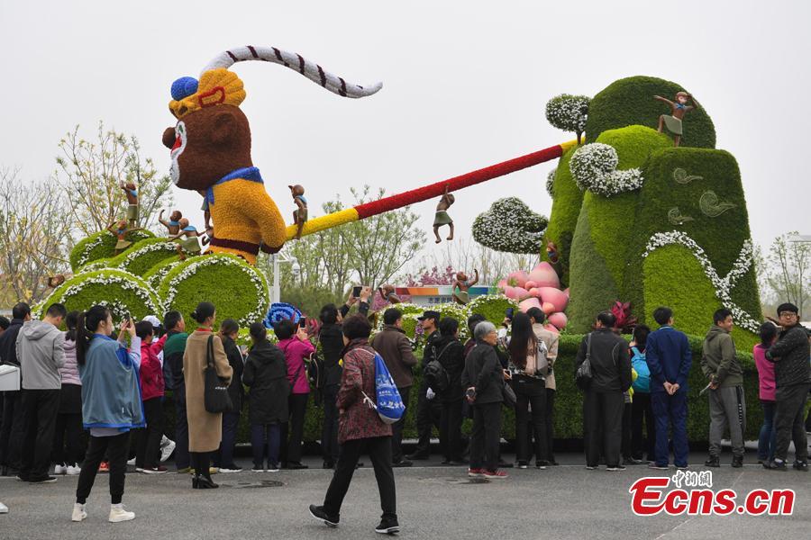 Visitors enjoy the float parade as the 2019 Beijing International Horticultural Exhibition opens on April 29, 2019. The expo, to be held from April 29 to Oct. 7, will exhibit flower, fruit and vegetable farming at the foot of the Great Wall in Beijing. (Photo: China News Service/Cui Nan)