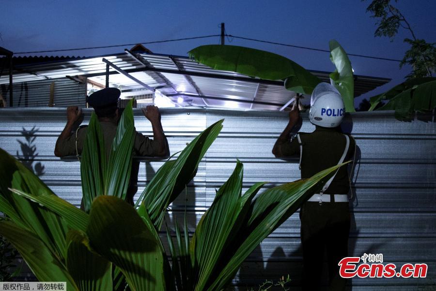 Police officers look over the tin walls of a training camp allegedly linked to Islamist militants, in Kattankudy near Batticaloa, Sri Lanka, May 5, 2019. (Photo/Agencies)