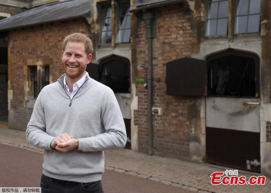 Britain's Prince Harry speaks to the media at Windsor Castle, Britain, on May 6, 2019. Meghan Markle, Duchess of Sussex, has given birth to a boy, the Duke of Sussex announced here on Monday. (Photo/Agencies)