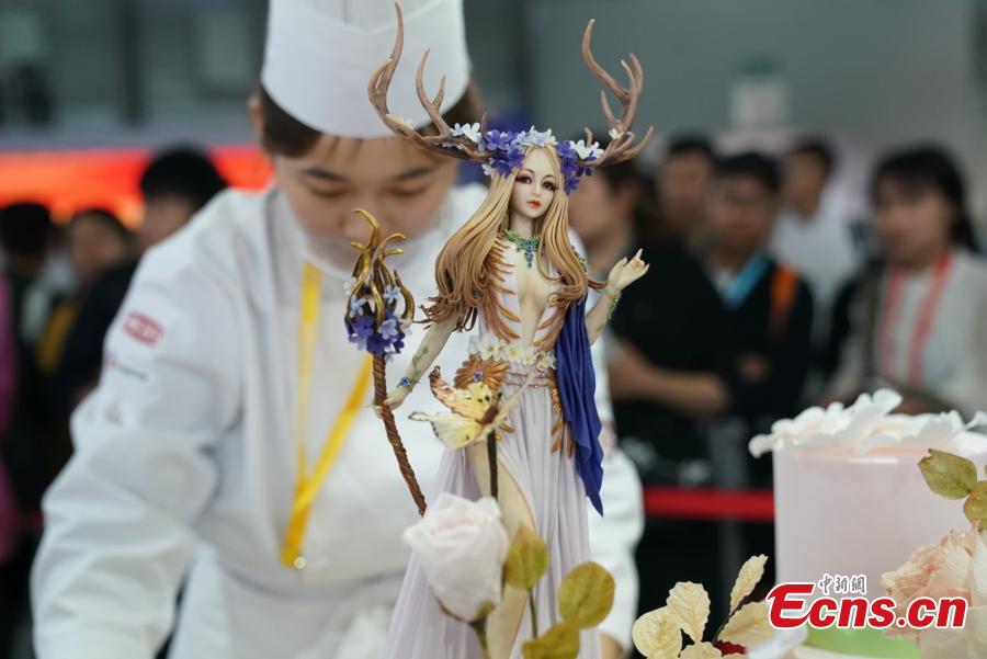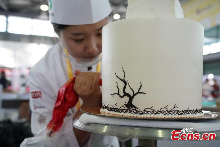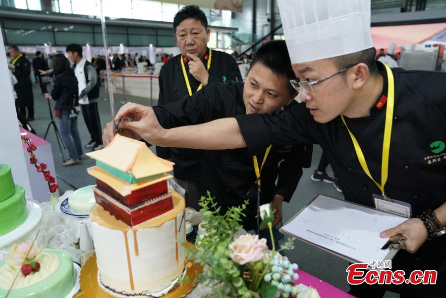 Participants compete in the 20th National Baking Skills Competition held at the Shanghai New International Expo Center, May 6, 2019. Eighty bakers from across the country took part in the competition organized by the China Association of Bakery and Confectionery Industry as well as other career guidance and industrial agencies. (Photo: China News Service/Wang Xin)