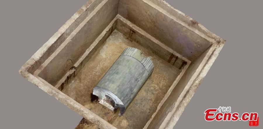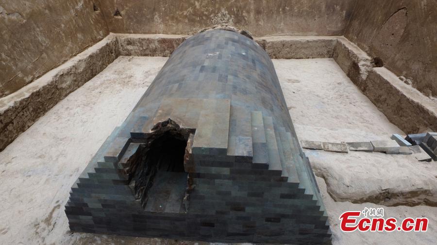 A view of a tomb from the late Han Dynasty (206 BC?220 AD) found in Xi'an City, Northwest China's Shaanxi Province. Zhu Lianhua, the deputy director of the Xi'an Cultural Relics and Archaeology Research Institute, said despite sand being filled around the tomb to protect it, raiders had struck at the site many times. (Photo provided by the Xi'an Cultural Relics and Archaeology Research Institute)