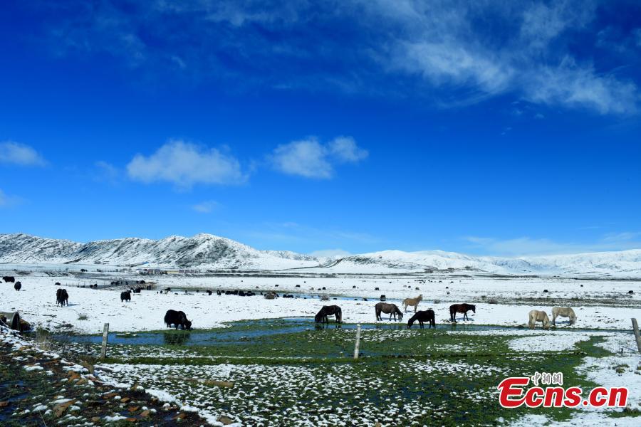 Snow covers the Hongyuan Prairie in Ngawa Tibetan and Qiang Autonomous Prefecture, Southwest China's Sichuan Province, May 7, 2019, after a cold front hit. The vast grassland is a tourist attraction in the province. (Photo: China News Service/Mou Jinghong)