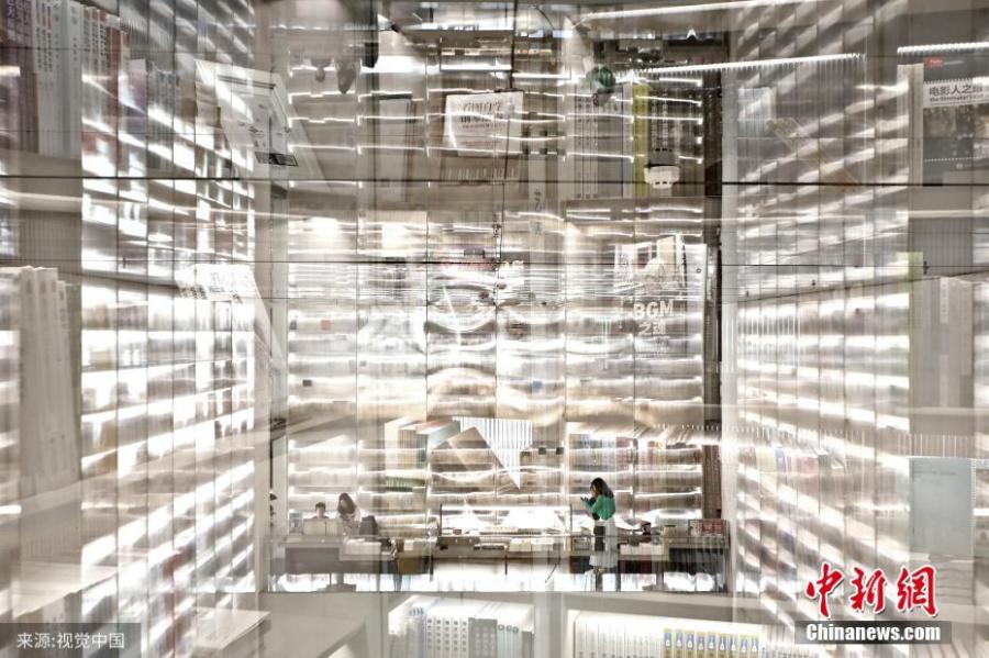 A bookstore featuring transparent bookcases in Xi’an, capital of Northwest China's Shaanxi province. Installed with three 12-meter-high such bookcases to show off reading materials, the bookstore offers customers an unique reading experience. (Photo/VCG)