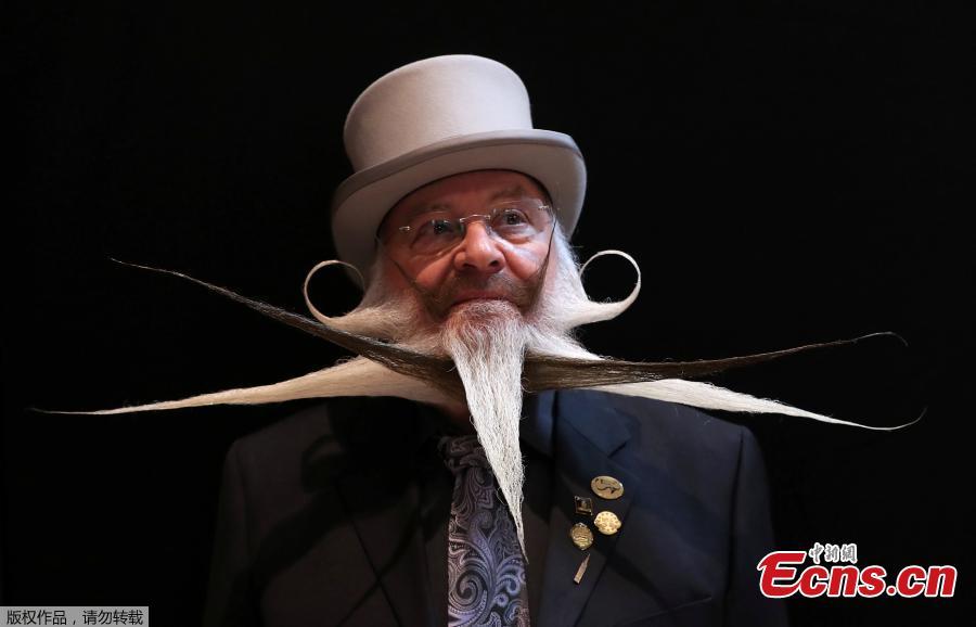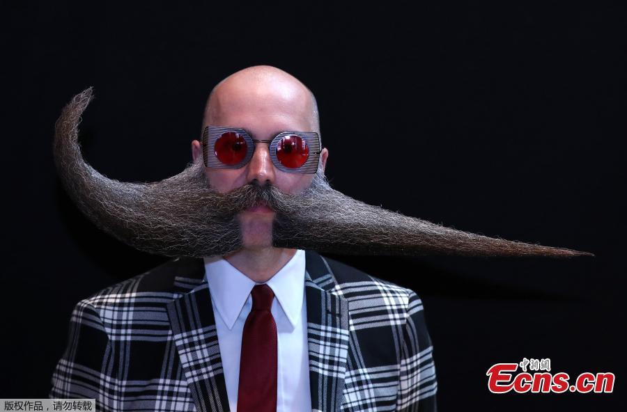 A participant of the international World Beard and Moustache Championships poses before taking part in one of the 17 categories of beard and moustache styles competing in Antwerp, Belgium May 18, 2019. (Photo/Agencies)