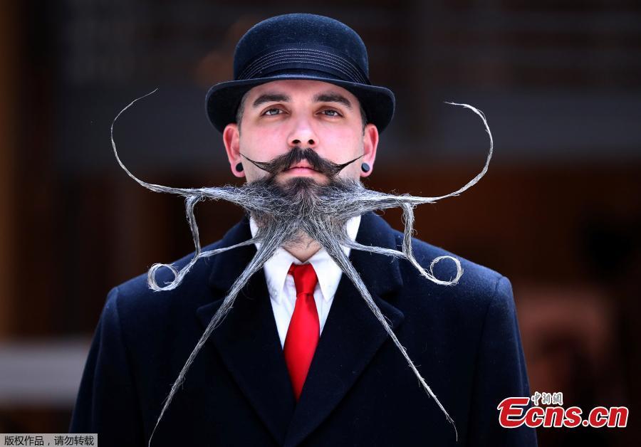 A participant of the international World Beard and Moustache Championships poses before taking part in one of the 17 categories of beard and moustache styles competing in Antwerp, Belgium May 18, 2019.(Photo/Agencies)
