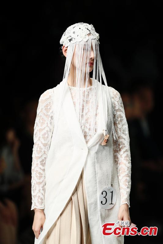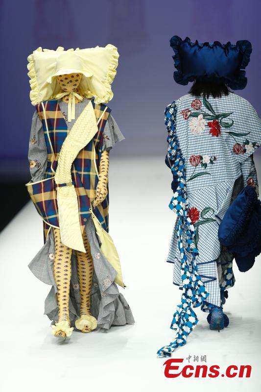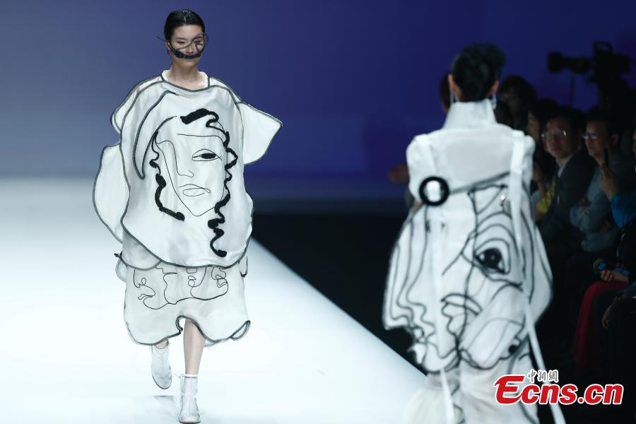Models wear creations by a newcomer designer during the China Graduate Fashion Week in Beijing, May 19, 2019. The seven-day event concluded on Sunday night, with the announcement of ten winning newcomer designers. (Photo: China News Service/Sheng Jiapeng)