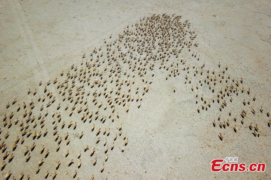 Approximately 3,000 Tibetan antelope form a spectacular scene as they migrate in Gerze County, Ngari Prefecture, Southwest China’s Tibet Autonomous Region. (Photo: China News Service/ Sonam Rinchen)