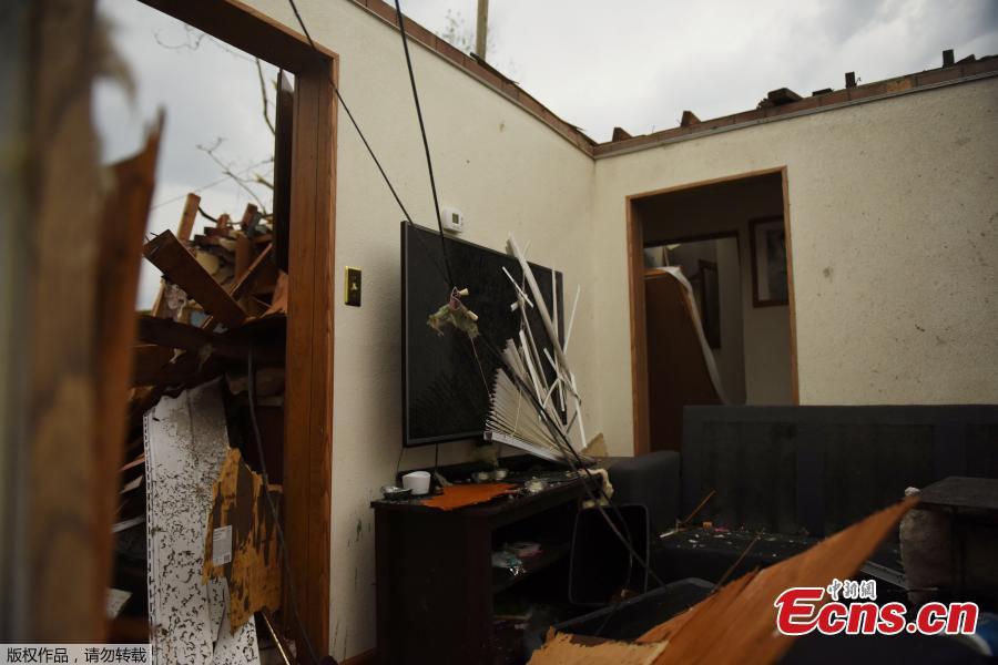 A damaged home on the corner of Woodlawn Avenue following a tornado touchdown overnight in Jefferson City, Missouri, U.S. May 23, 2019. (Photo/Agencies)